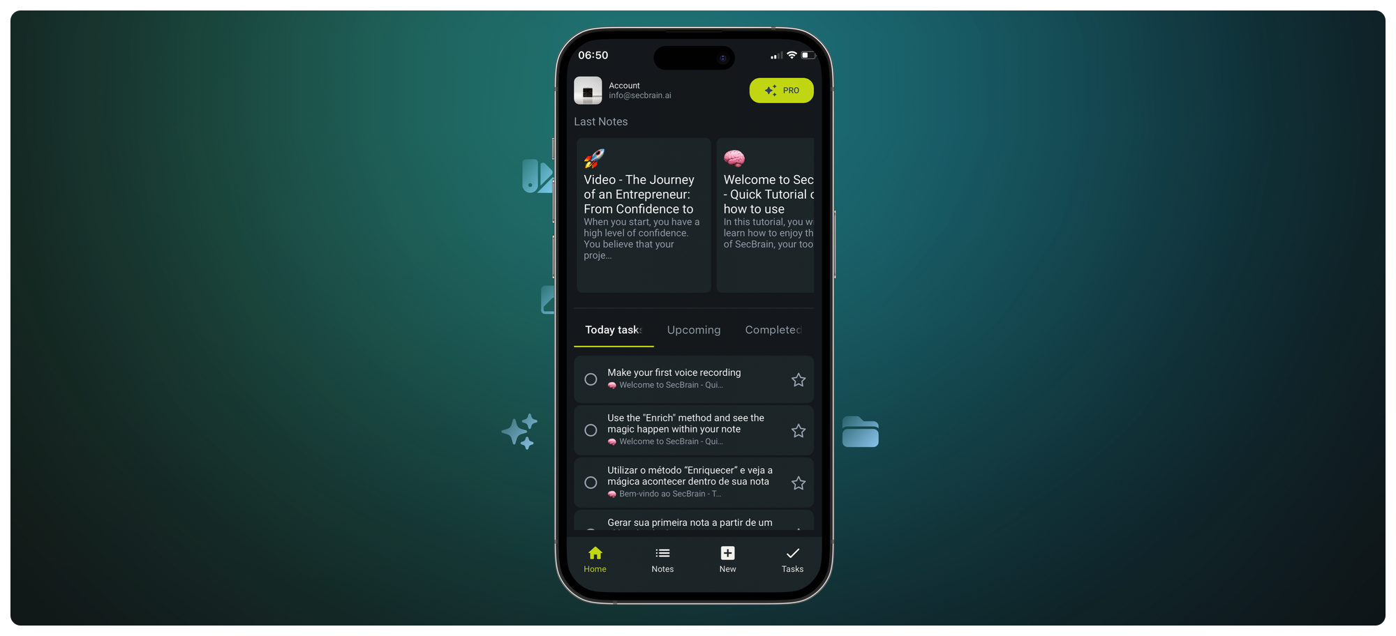 🎙️ Effortless Note Creation: Simply press record or type your thoughts, and SecBrain will automatically generate a title, summary, optimized text, and save everything securely in the cloud.