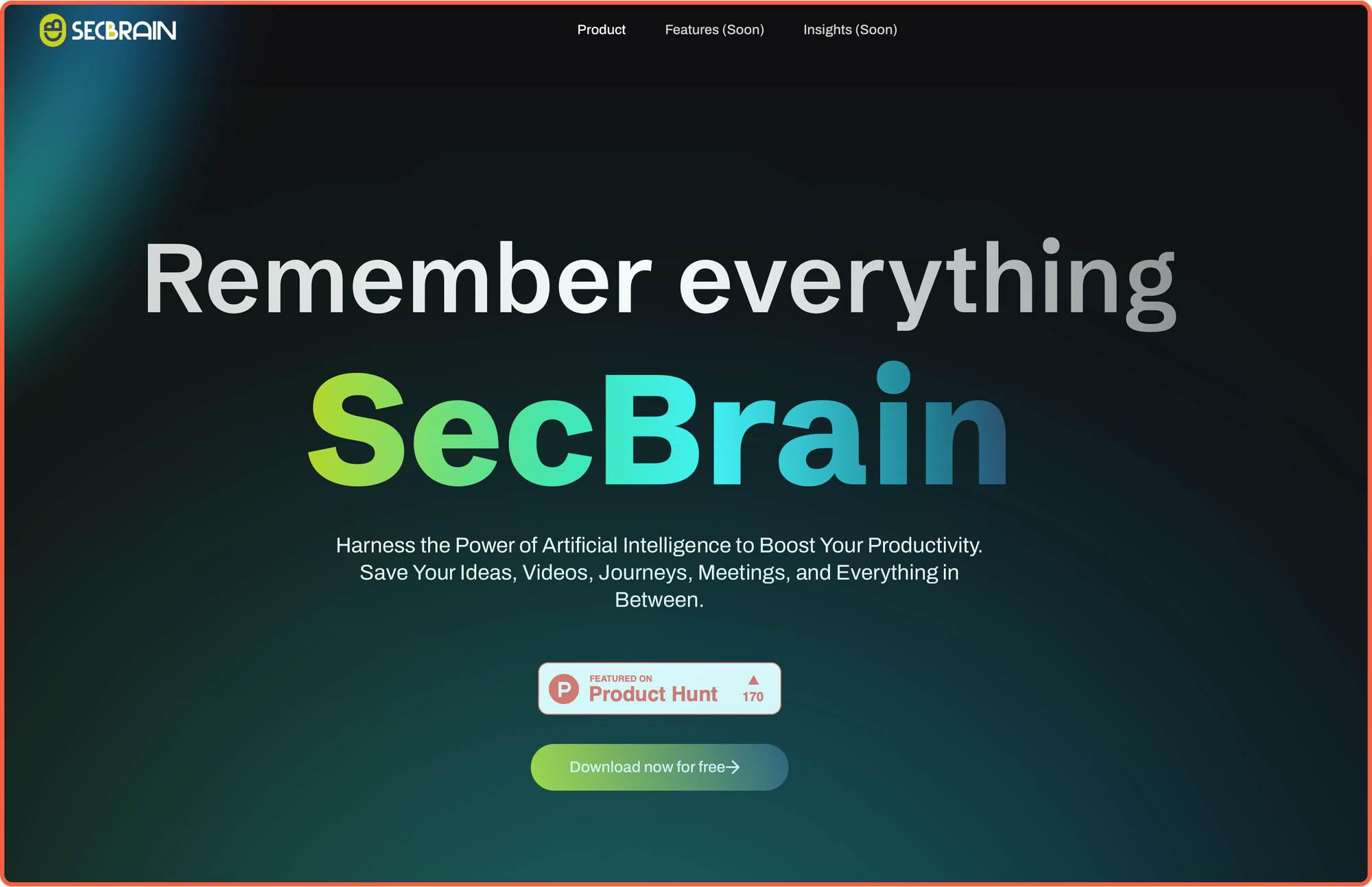 SecBrain is an AI-driven productivity app that helps you capture, organize, and optimize your ideas, notes, and tasks effortlessly. Whether you prefer to record audio, type text, or even save videos from platforms like TikTok and Instagram, SecBrain simplifies the process of turning your thoughts into actionable insights - ensuring you never lose a valuable idea again.