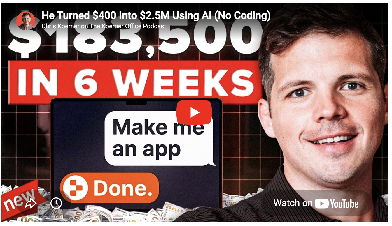 Jon Cheney couldn't write a single line of code. Still can't. But on the Chris Koerner Podcast he walks through how he dragged a $105K dev shop proposal into Replit, watched it build in 20 minutes, and launched Gen AIPI three days later for $400 total. By Tuesday he had a $15,000 customer.