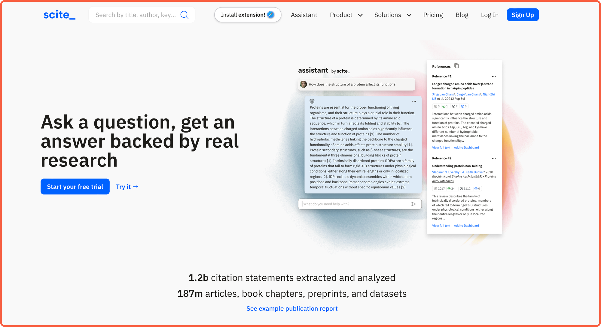 📊 Extensive Database: With over 1.2 billion citation statements extracted from 187 million articles, book chapters, preprints, and datasets, scite offers a comprehensive resource for researchers.
