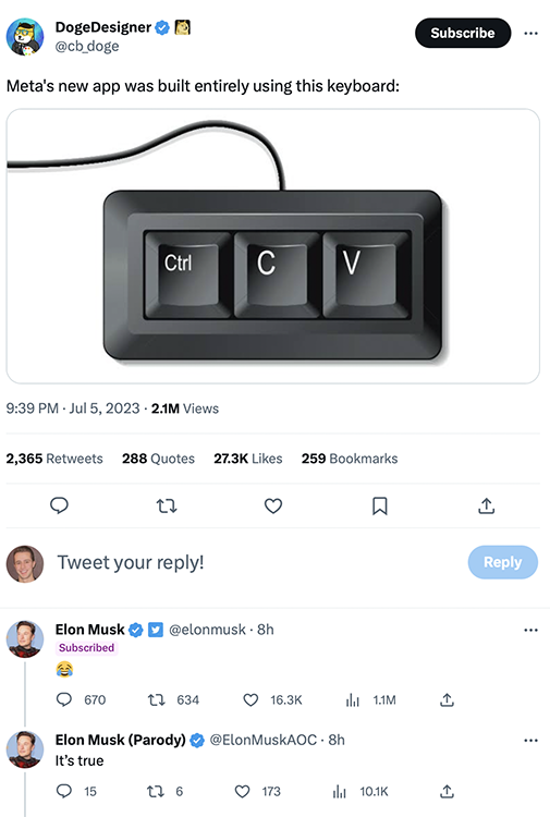 Elon Musk responded to a tweet that claimed Meta's new product is a copy of Twitter. We'll let you be the judge. Because there are there are some differences between the two platforms.