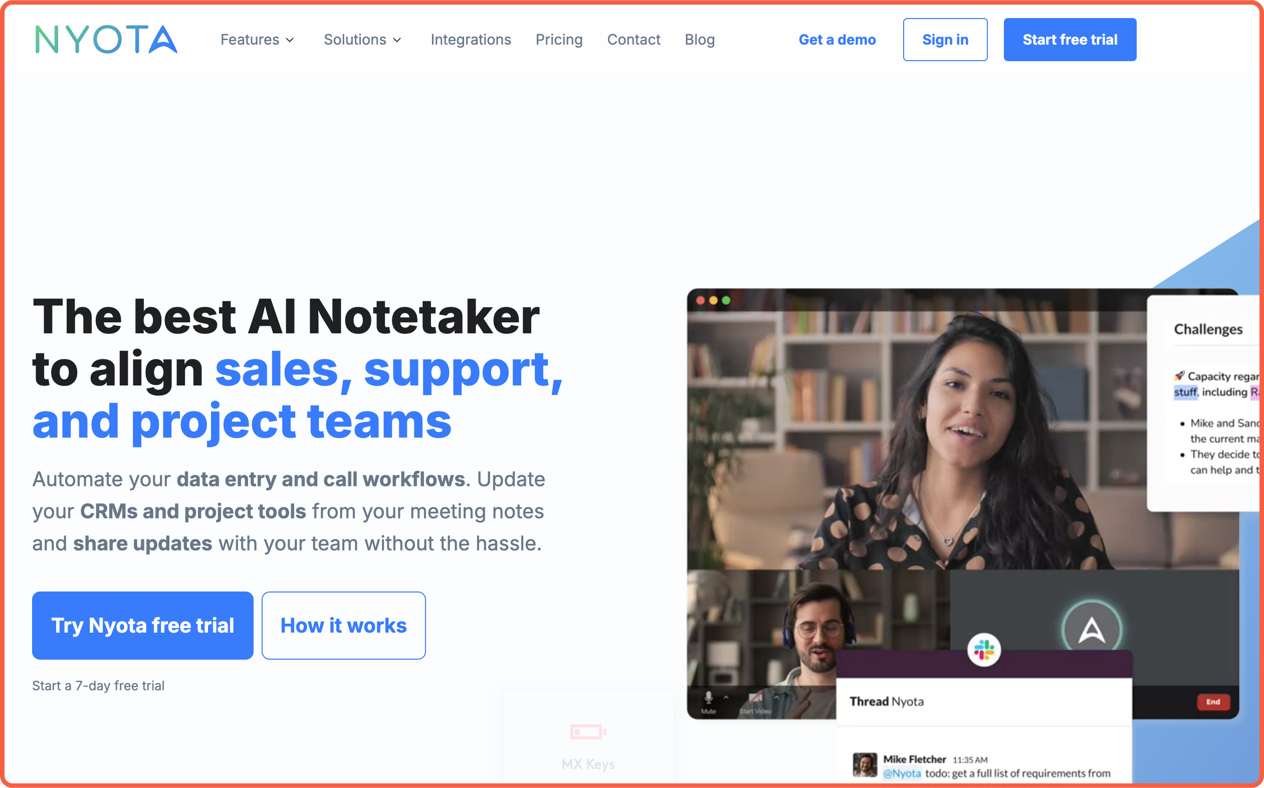 Nyota is an advanced AI notetaker designed specifically to align sales, support, and project teams. It automatically joins your virtual meetings on platforms like Zoom, Google Meet, and Microsoft Teams to capture comprehensive notes. Nyota goes beyond basic transcription by syncing meeting content with your CRMs and project management tools. Then, generates custom reports and provides a searchable knowledge base across all your meetings.