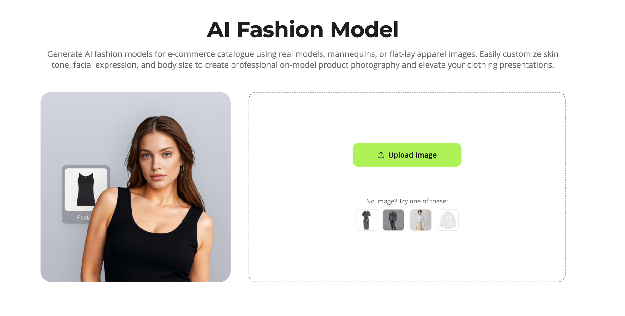 👗 AI Fashion Model + Virtual Try-On: Create lifelike model imagery and preview outfits with virtual try-on, built for apparel marketing and faster creative testing.