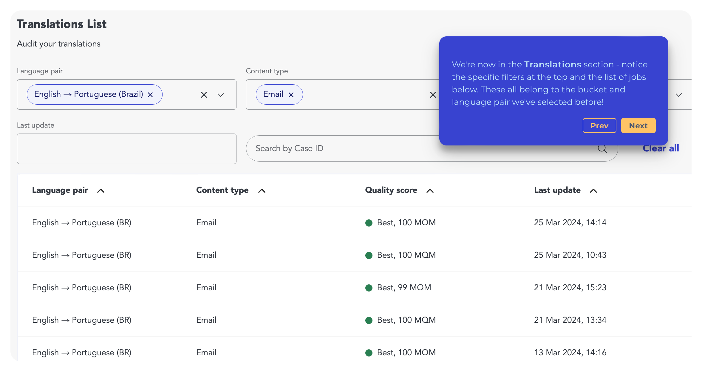 ๐ Real-Time Quality Reporting: With Unbabel's unique AI quality estimation, you gain full visibility into translation performance, enabling them to optimize their processes and ensure confidence in every translation.