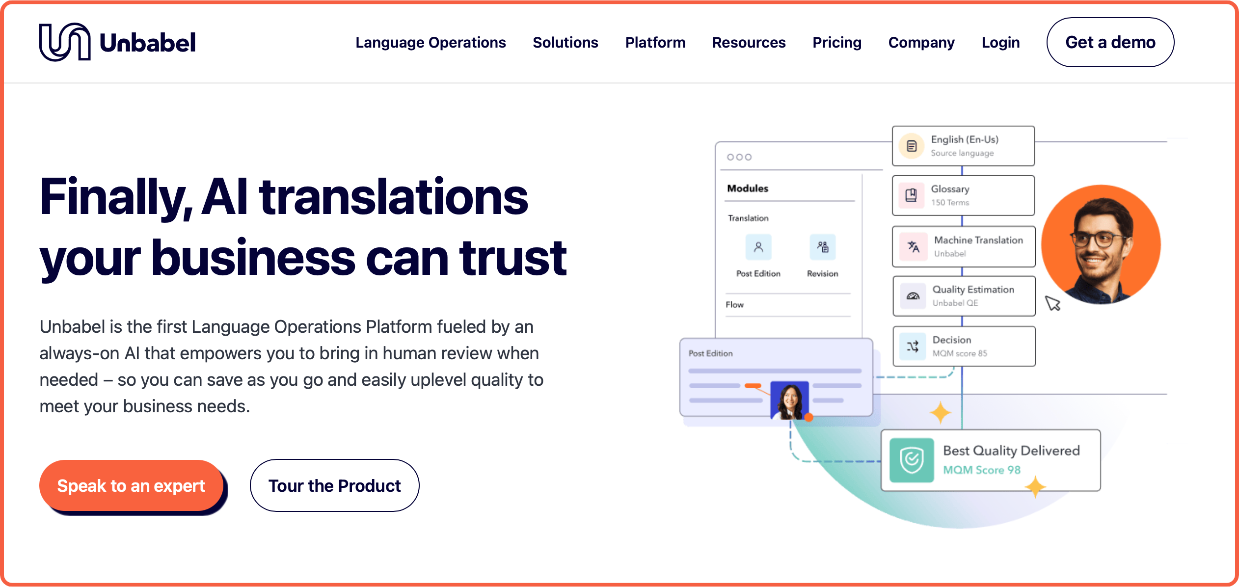 Unbabel is a Language Operations (LangOps) Platform that's helping businesses go global with ease. Unbabel combines AI with human expertise to deliver top-notch translations. Ones that capture your brand's voice and tone. It works with your favorite apps and platforms, and offers customizable workflows and real-time reporting.