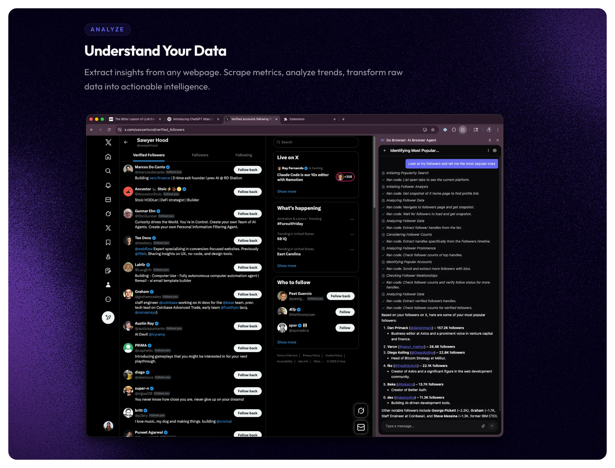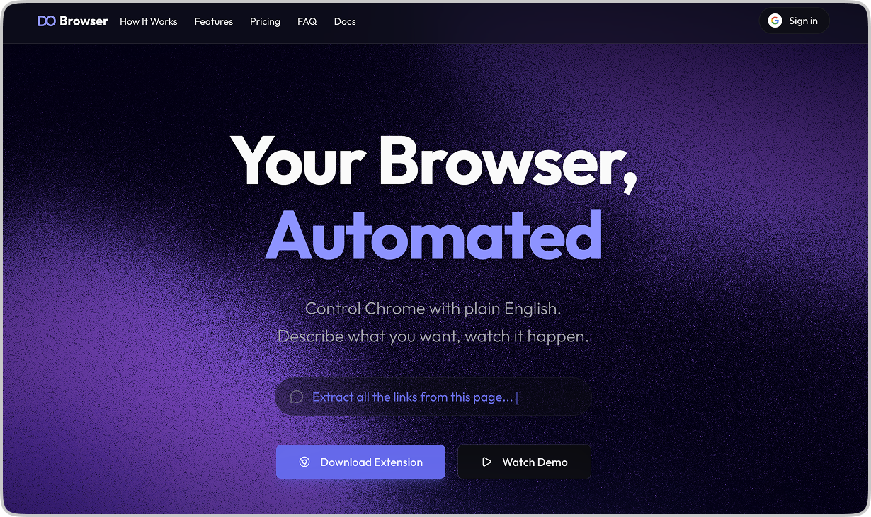 Do Browser is a Chrome extension that lets you control your entire browser with plain English. Think of it as giving your browser a brain that reads your instructions and handles the tedious web work while you move on to something that actually matters.