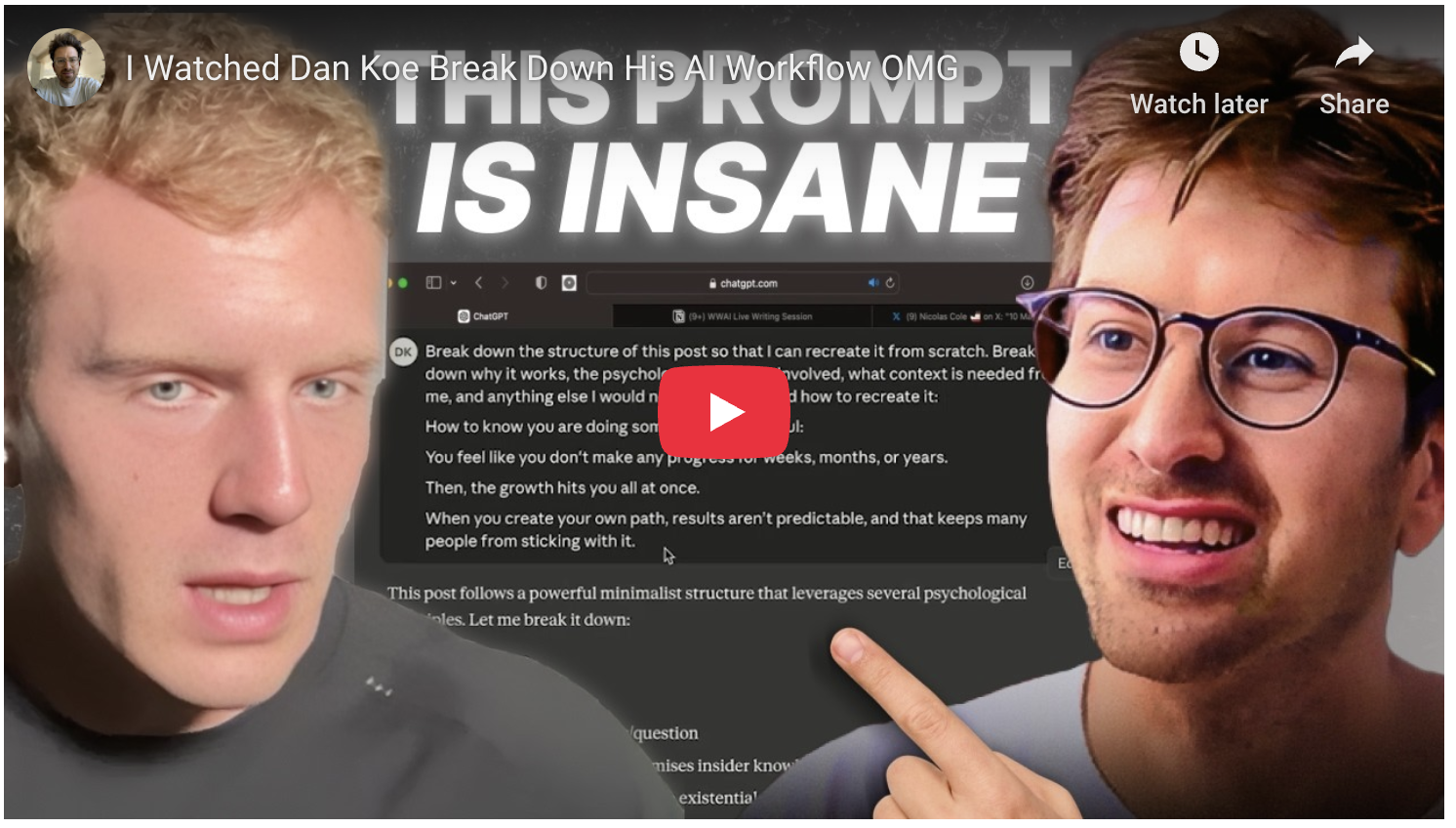 Content creator Dan Koe reaches 2 million followers with one weekly newsletter - The Koe Letter - wirth 120,000 subscribers. How does he do it? Greg Isenberg, On the Startup Ideas Podcast Greg Isenberg interviewed him to break down his AI workflow.