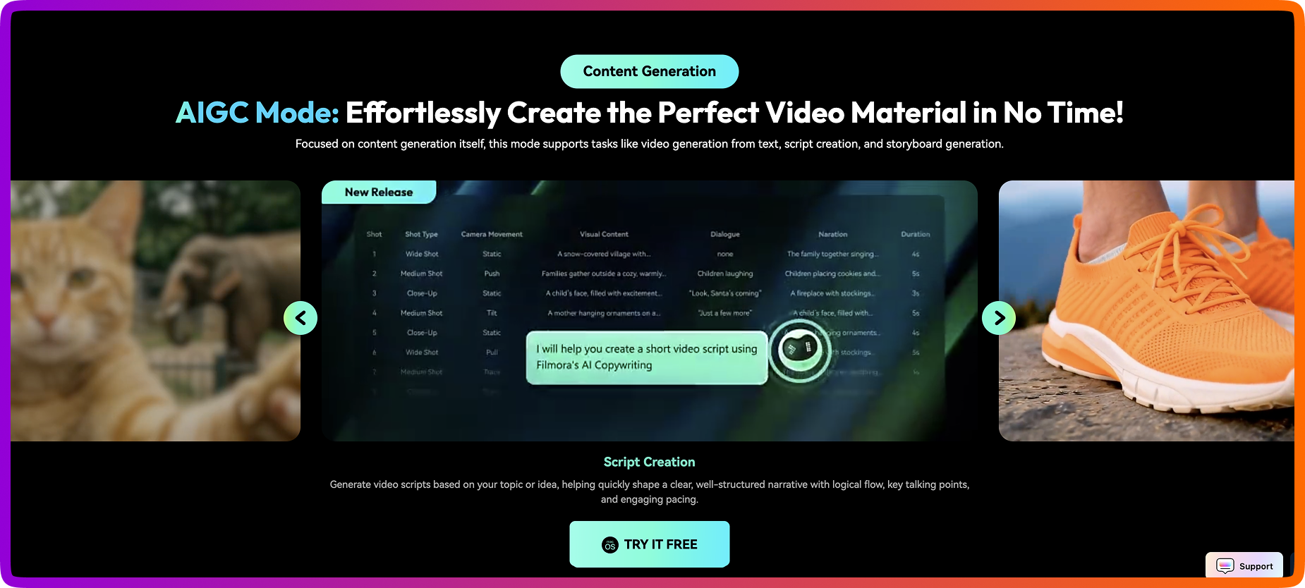 🎬 AIGC Mode Generates Content From Text: Create video materials from prompts and use AI Mate as a hub for generative creation like text-to-video, script creation, and storyboard generation.