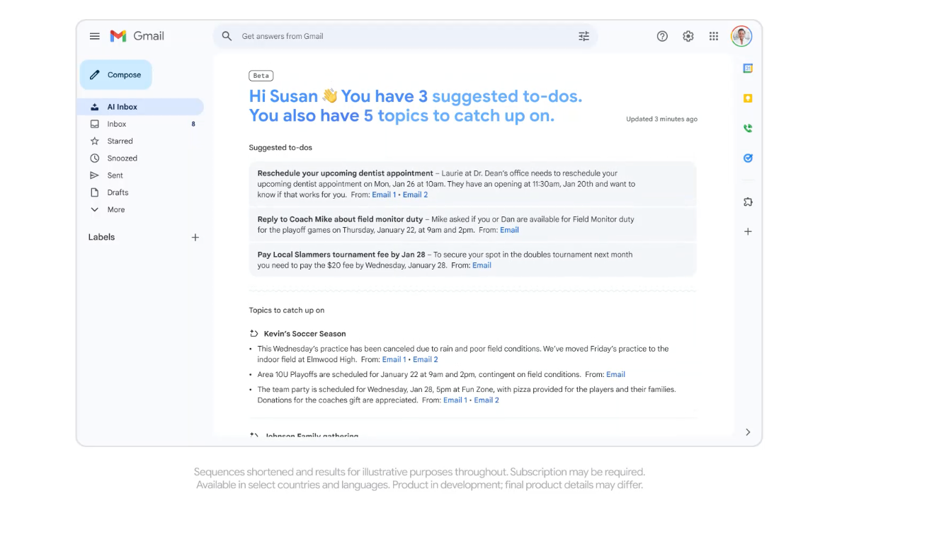 Need to know who quoted you on a renovation last year? Just ask. Gmail also gets a new AI Inbox that prioritizes emails based on relationships and deadlines, surfacing what actually matters. Conversation summaries roll out free to all 3 billion users. The natural language search requires a paid Google AI subscription.