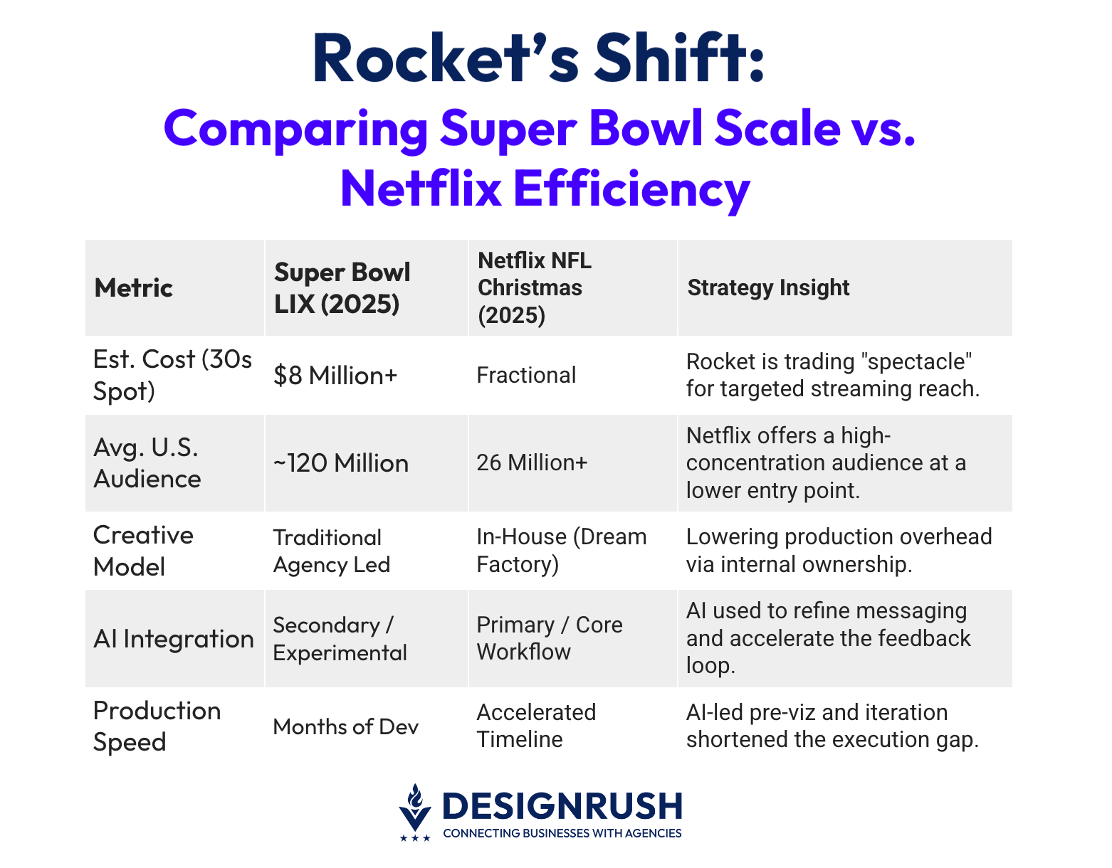 Rocket's Christmas Day NFL spot wasn't made by an agency. The company's in-house Dream Factory team built the whole thing, with AI baked into the process from start to finish. What's worth paying attention to here isn't the ad itself...it's what happened behind it.