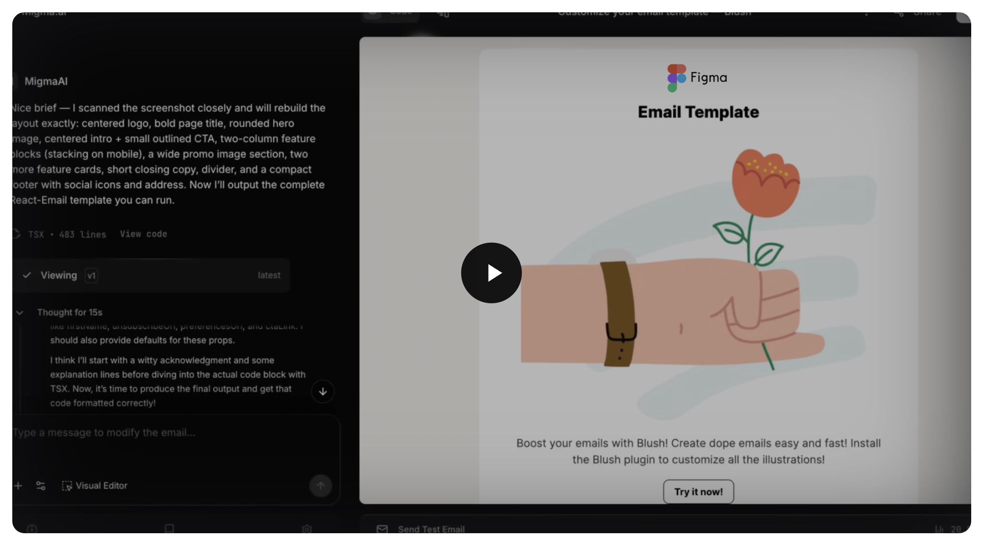 📸 Bring Your Own Design, Any Format: Already have a look you love? Upload a screenshot, sync from Figma, or paste in HTML, and Migma reconstructs it as a fully editable template you can customize and send.