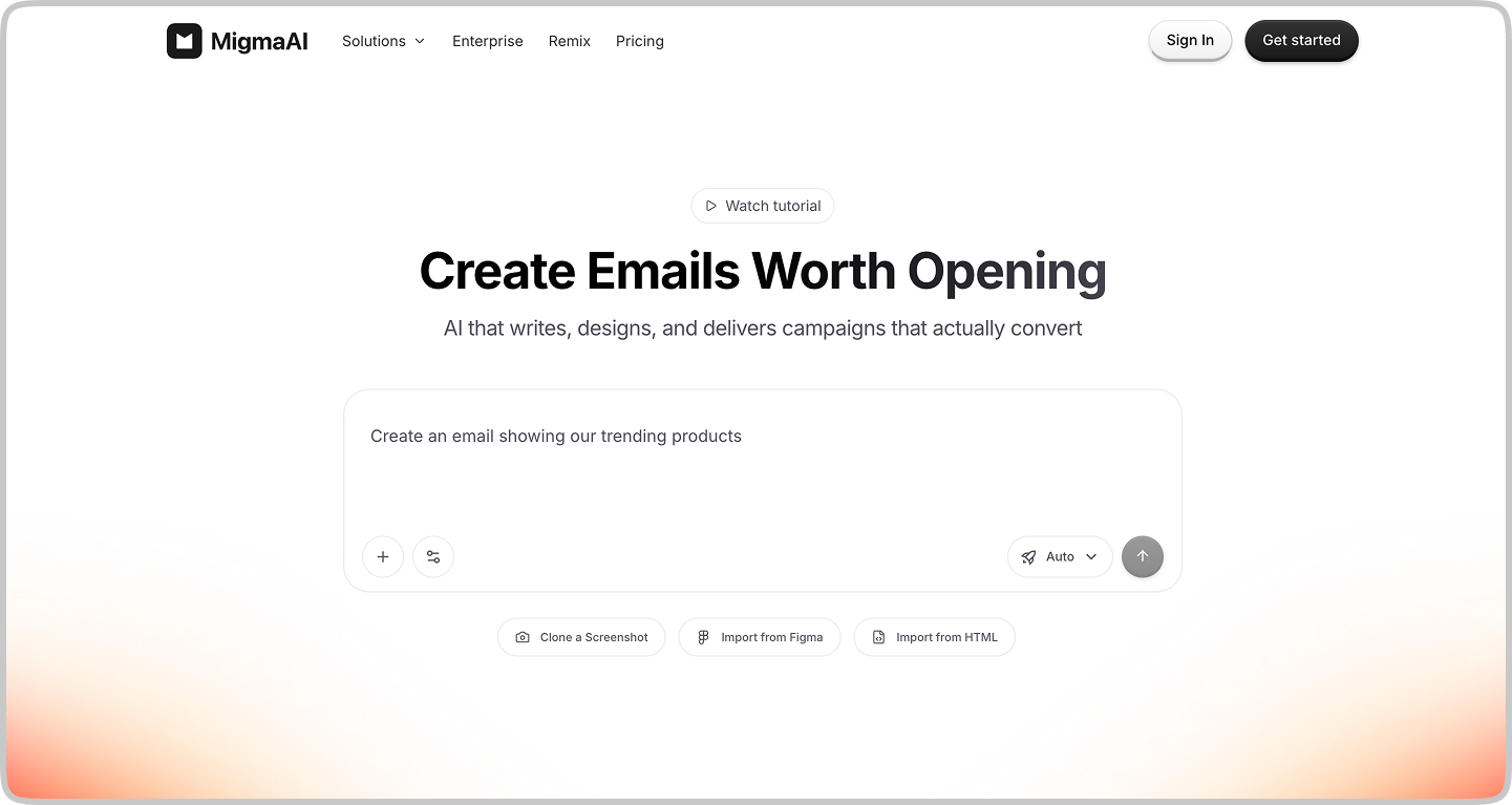Migma is an AI-powered email platform that handles the entire campaign lifecycle — writing copy, designing layouts, building flows, and delivering to inboxes — all from a single prompt. It collapses the traditional stack of copywriter, designer, developer, and ESP into one system where a rough idea becomes a pixel-perfect, trackable campaign in the time it takes to pour a coffee.