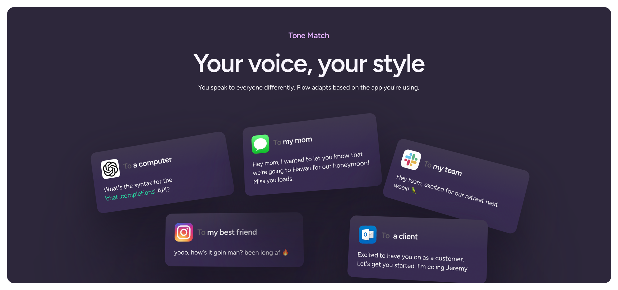 🧠 Context-Aware Formatting: Your dictated text is formatted automatically depending on the app and task you’re working on.
