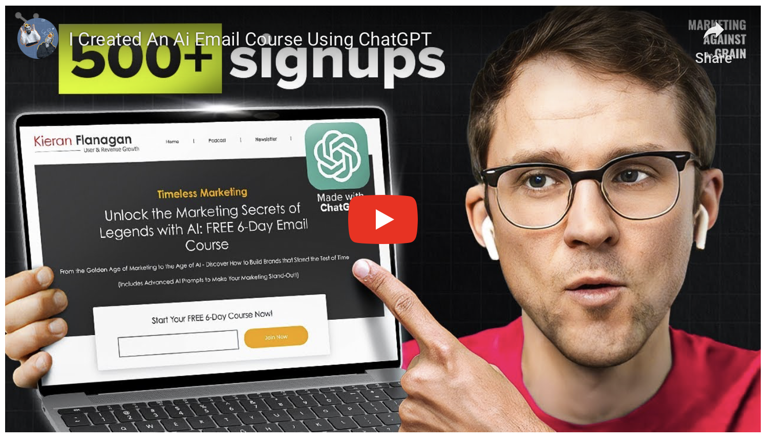 Kieran Flanagan from the "Marketing Against the Grain" YouTube channel revealed his incredible process for creating an entire email course using AI tools.