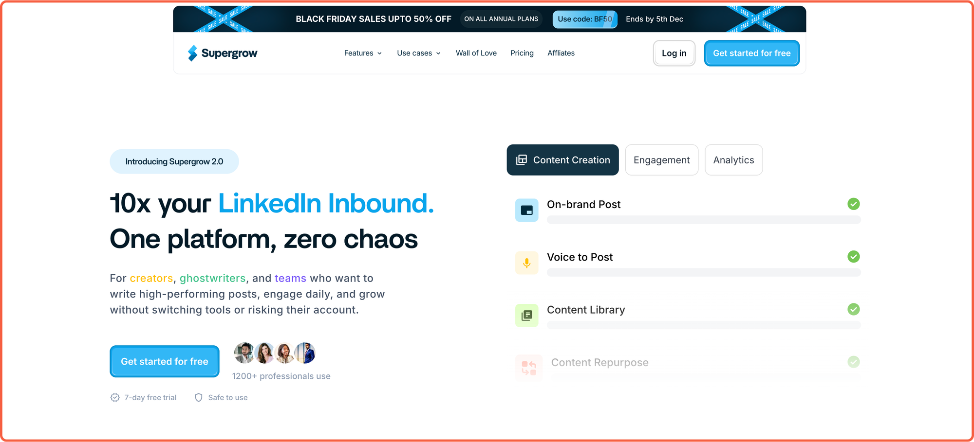 Supergrow is an all-in-one LinkedIn platform for creators, ghostwriters, and teams who want to grow their presence without juggling a dozen tools. It handles everything from post creation to engagement tracking in one place.