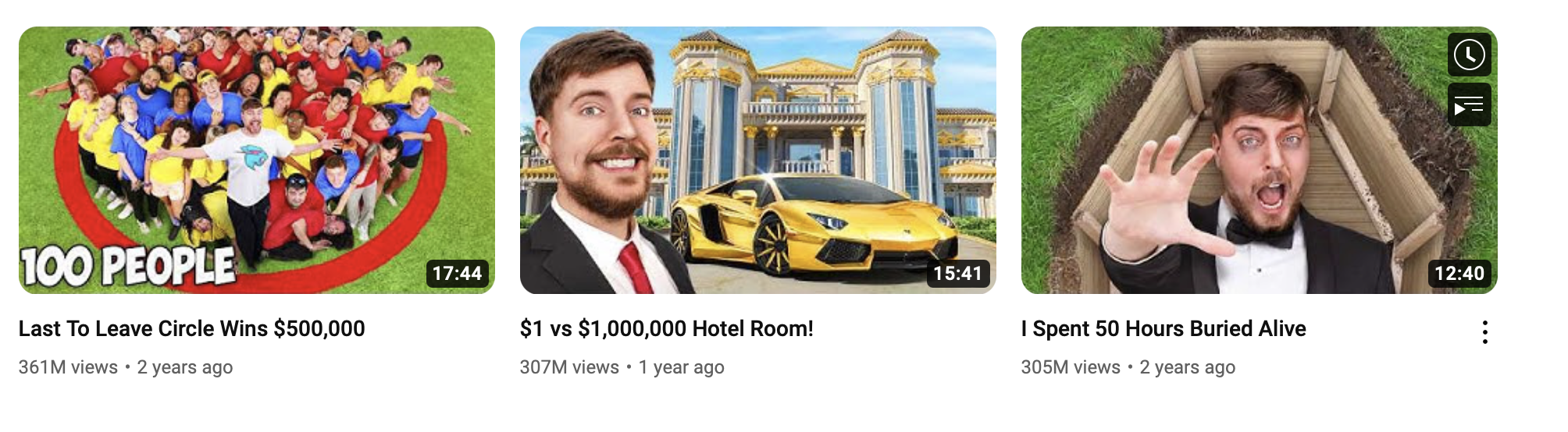 MrBeast often presents something so out of the ordinary that they have no choice but to click and find out more.