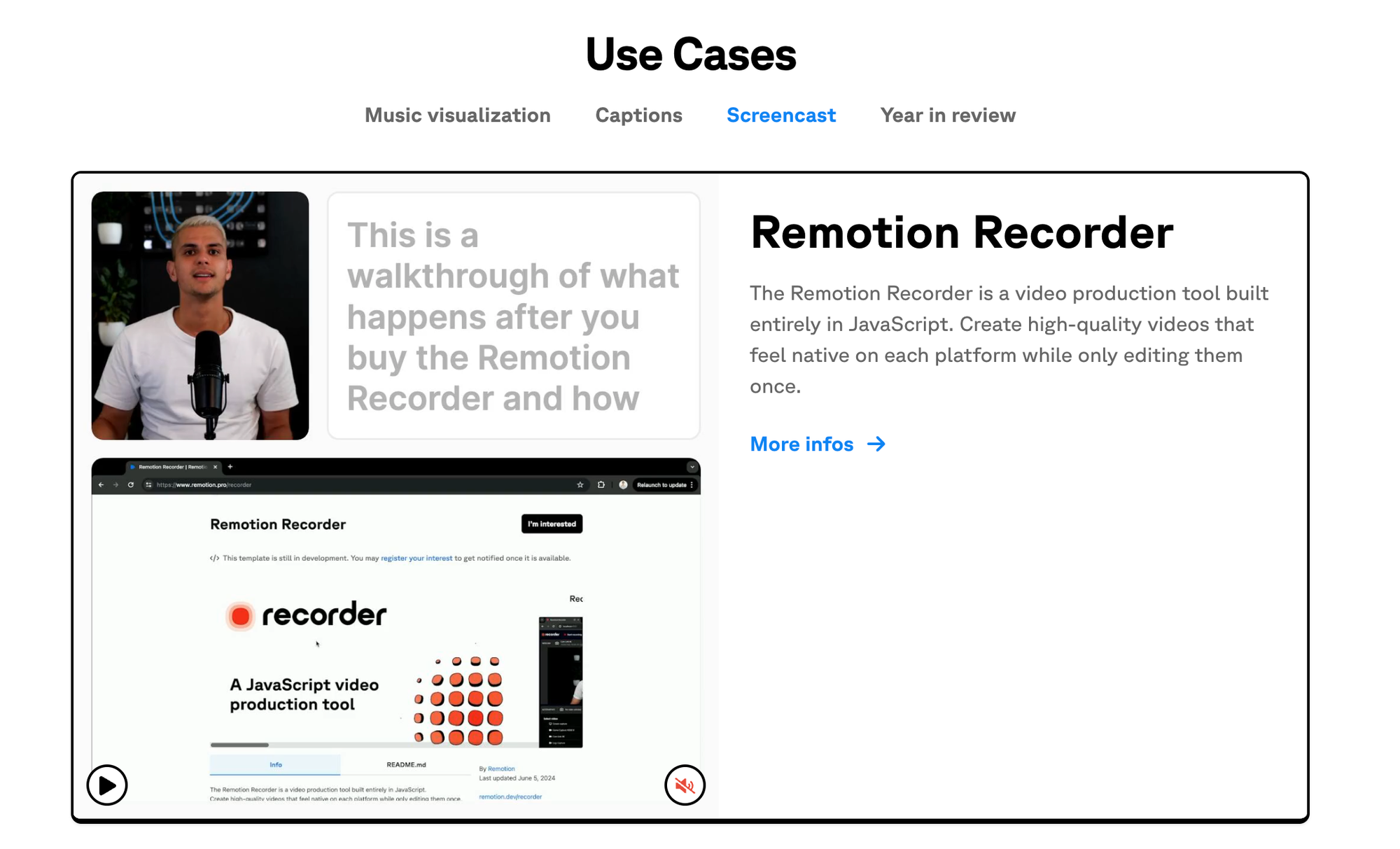 ▶️ Embed videos in your product with Player: Drop a Remotion video into any React app and even customize content at runtime, great for interactive demos and personalized previews.