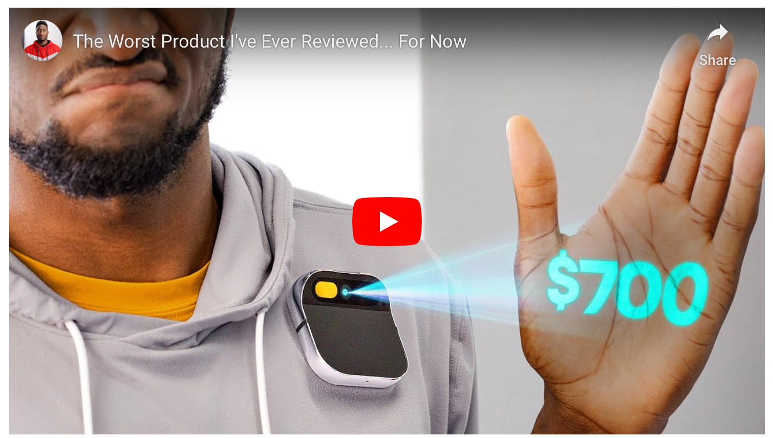 Tech YouTuber Calls Humane AI Pin "The Worst Product I've Ever Reviewed"