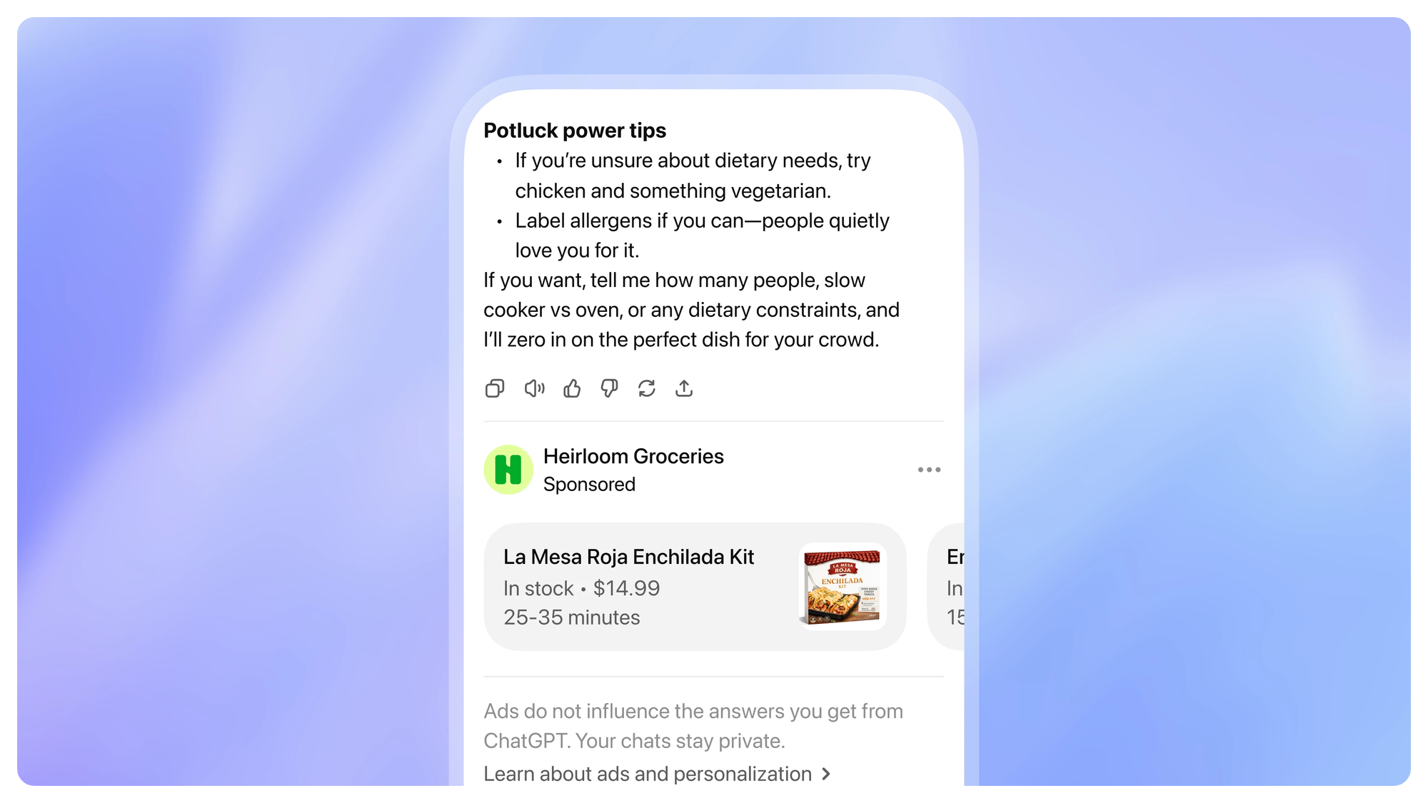 Free and Go tier ChatGPT users in the U.S. will now see sponsored content in their conversations. OpenAI says ads are matched to your chat topics and history, but they're always labeled and kept separate from answers. Nothing about what ChatGPT tells you changes, and advertisers never see your conversations.