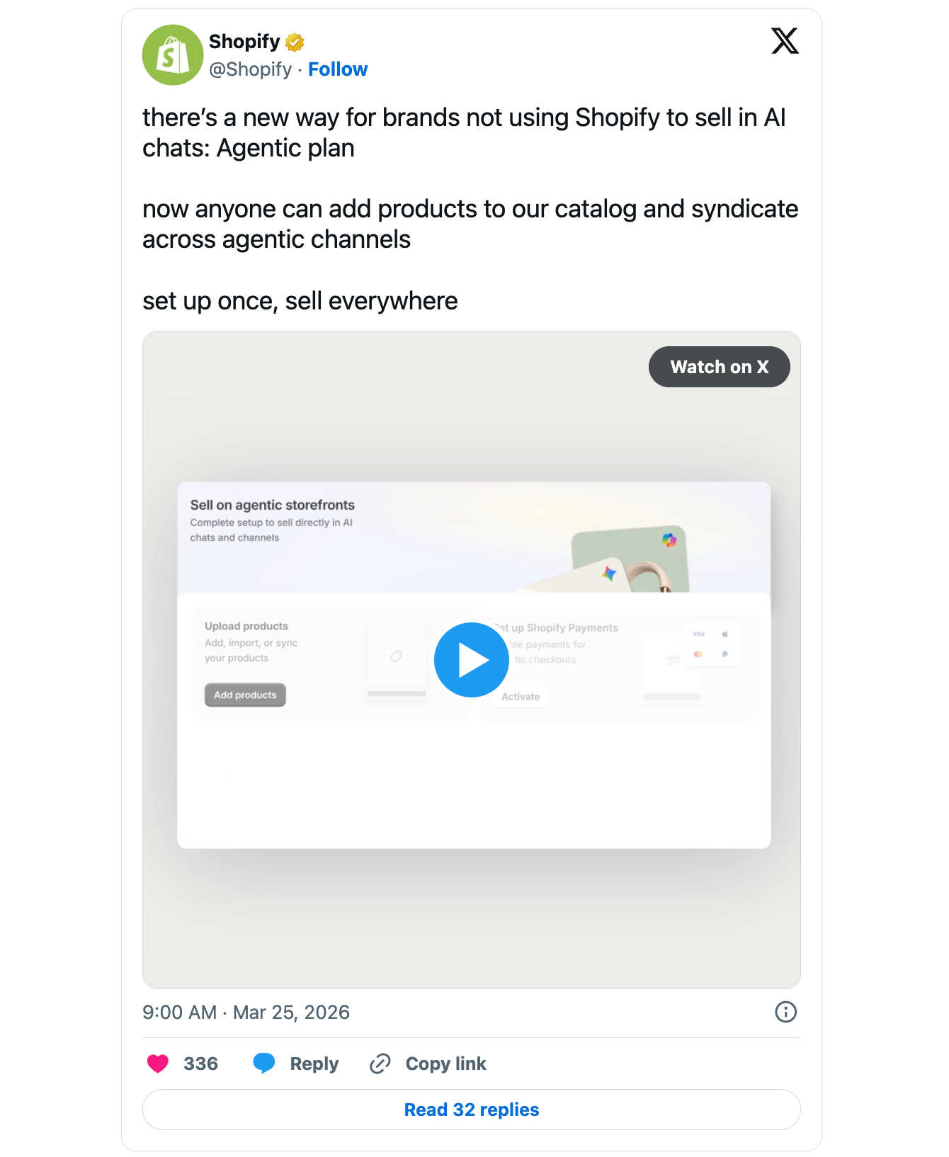 Brands that don't even use Shopify for e-commerce can now join through a new Agentic plan and list products across those same AI channels.