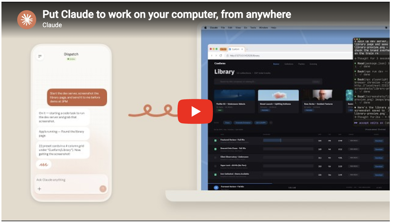 Pair that with Dispatch, a feature that lets you assign tasks from your phone, and Claude handles them on your desktop while you're riding the train. Available in research preview for Pro and Max subscribers on macOS.