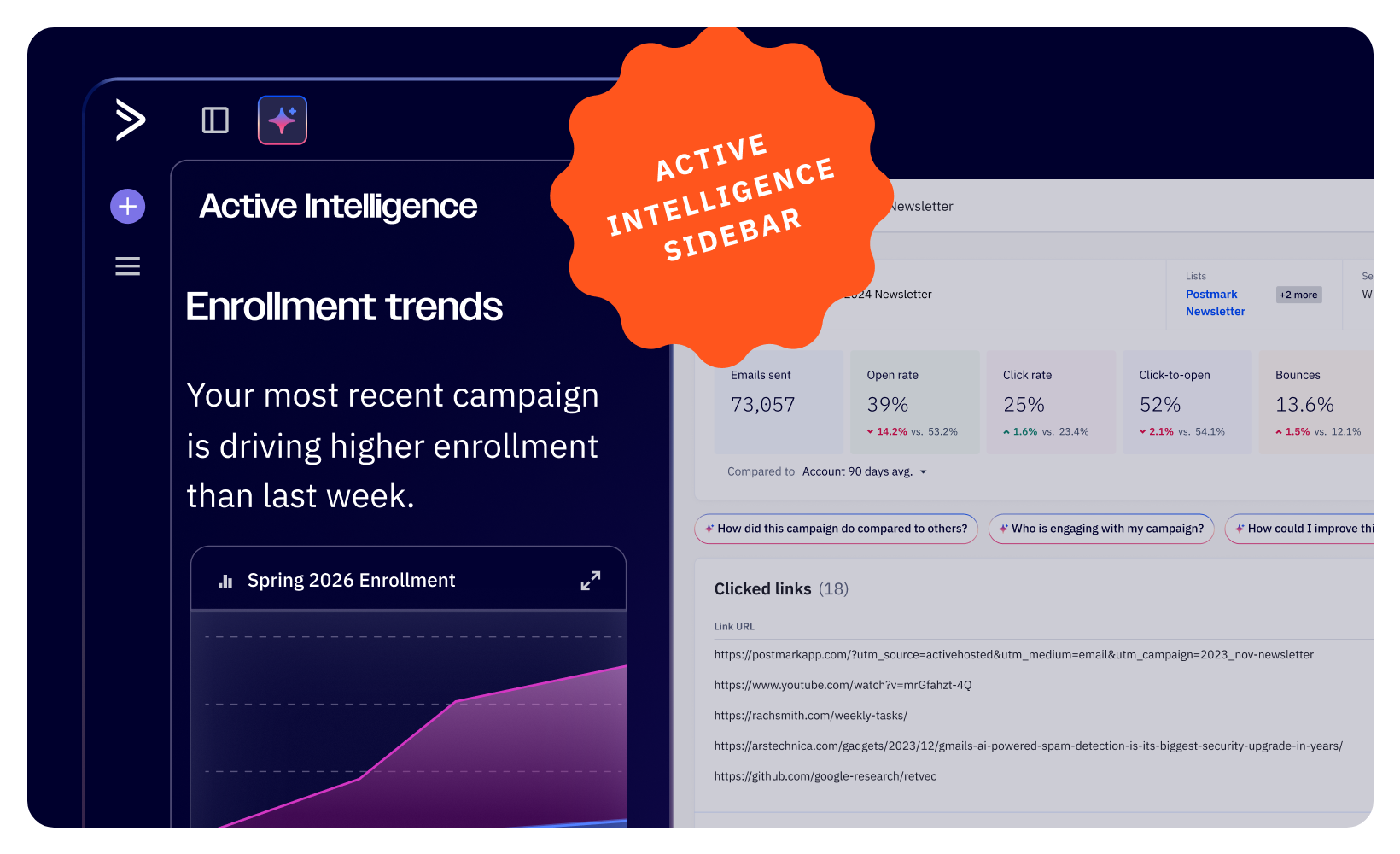 ActiveCampaign's AI assistant now follows you around the entire platform. The new Active Intelligence sidebar stays visible on every page you visit. It figures out what page you're on and offers tips that match your work.