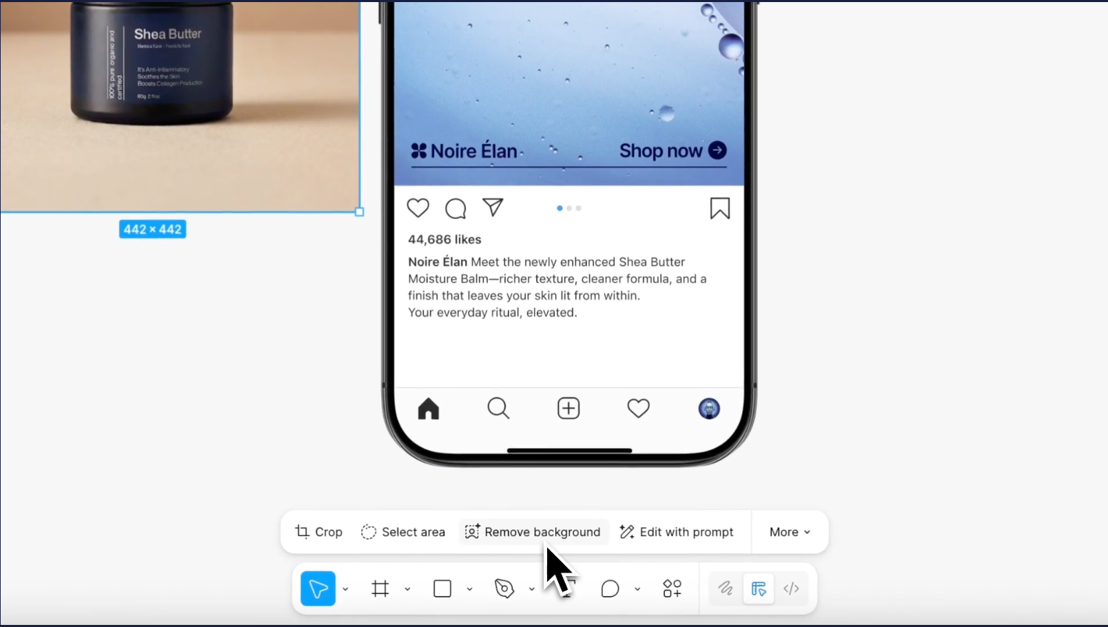 And when a square photo needs to fit a wide banner, the expand tool stretches the canvas while keeping the subject intact. Figma noticed how much people relied on Remove background and decided to round out the toolkit.