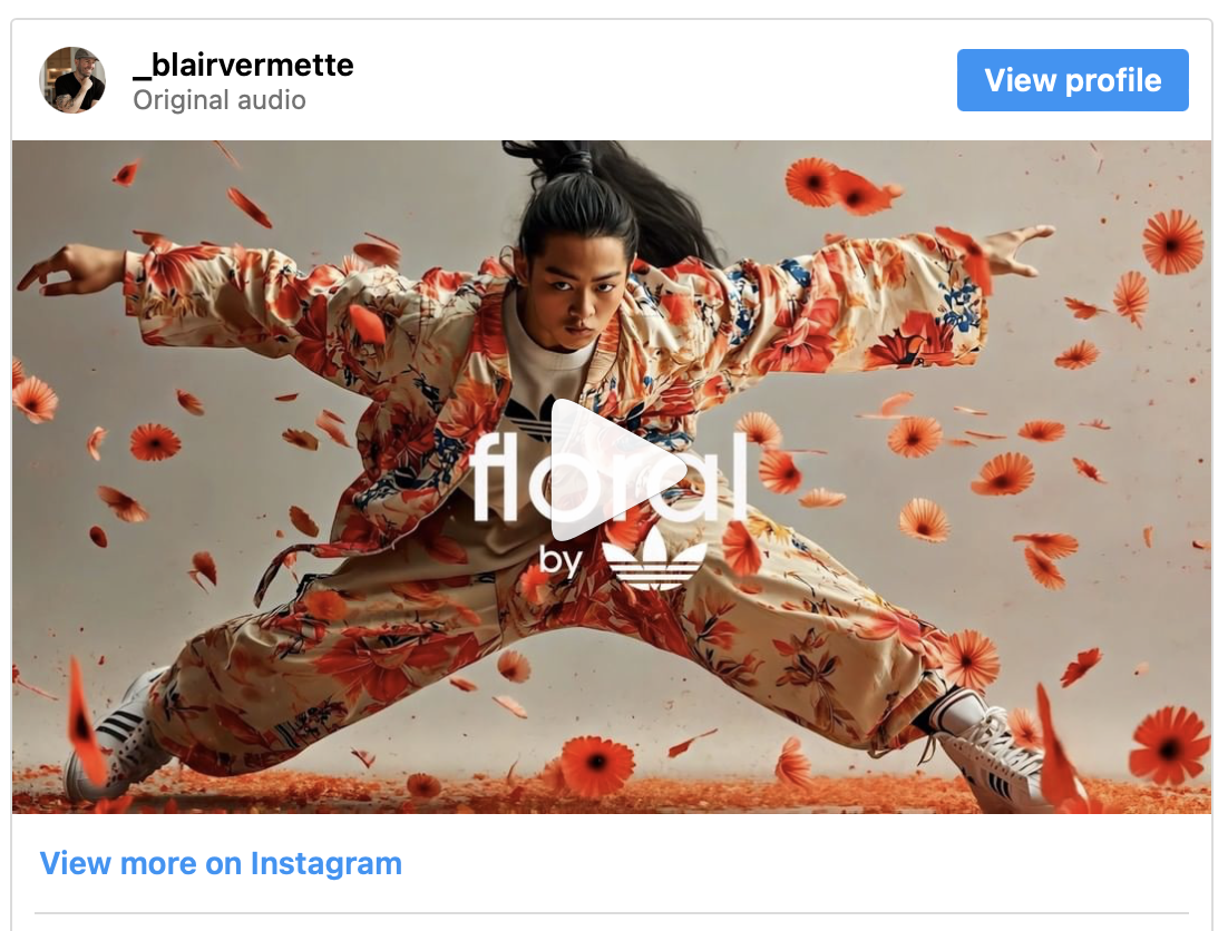 Film director Blair Vermette has wowed the advertising world with a stunning speculative ad for Adidas - created entirely using cutting-edge AI tools. The captivating ad promotes a fictional floral collection and features AI-generated dancers in vibrant Japanese locations, set to a catchy Megan Thee Stallion track.