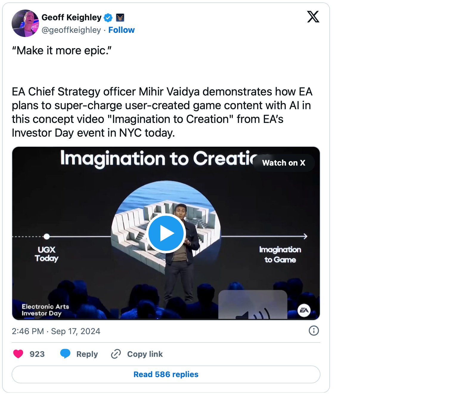 Electronic Arts has unveiled a futuristic AI system that could revolutionize game development. Their "Imagination to Creation" concept allows users to create and modify games instantly using simple voice commands - no coding required.
